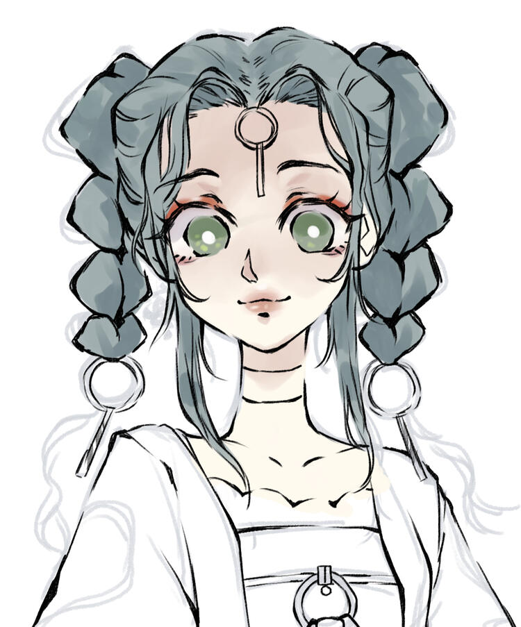 One of the daughters of the First Mother, Nabi led a life of tranquility. She was always taught the wonders and virtues of mankind, and yet she was never allowed out into the mortal world. Daughters of the First Mother are to remain untouched and unspoiled by the influence of men. Nabi was always confused at that statement-- there was so much good in the world, how could she possibly be harmed if she were to step foot into the mortal realm?Nabi’s love and curiosity for mankind grew and grew, and one day an opportunity arose where she took that chance. When Kaiming first attacked and caused havoc in the heavenly realm, Nabi swiftly made her escape, bringing nothing but the clothes on her back and the fans that were gifted to her by her mother.As a child who was always pampered and had attendants waiting on her hand and foot, for her to be suddenly thrown into the world with no help of any kind was a sudden and drastic change. Unsurprisingly, Nabi had a difficult time adjusting-- and the world she imagined with such love, turned to be cold and ruthless With tears in her eyes, Nabi tried to return to the heavenly realm, but she had broken the most important rule as a descendant of the First Mother:Do not expose yourself to the mortal world.The young goddess was not only expelled and never be allowed to return to the heavens, but she will never be able to give birth to children. As a failed daughter of the First Mother, this was Nabi’s punishment to endure. Still, her mother took pity on her, and let Nabi retain her immortality and gave her a small gift.“Go, my daughter. Live the life you’ve always wanted. The roads may not be what you expected, but it is still your road to take nonetheless. I part with you this gift, one that I pray will give you strength when everything seems bleak. Memories are a powerful tool, my Nabi, I hope you use it wisely.”Returning back to the mortal realm, everything was as challenging as ever. With no money to pay for food and housing, no support to lean on, and no real knowledge of the cruel world-- Nabi almost broke. Trudging through this world, facing horrifying and deplorable acts of mankind… It was all just too much.But whenever she found herself about to give up, she suddenly found herself surrounded by pearlescent butterflies. What’s even more is that the heaviness that burdened her body… was suddenly lifted. Nabi couldn’t recall why-- in fact, Nabi couldn’t recall anything at all. The butterflies that were floating gracefully in front of her were the memories of her burdens. And slowly over time, the butterflies rejoined Nabi’s mind one by one… each memory was painful, but slowly absorbing them helped her properly process the trauma and became much more bearable.This was the gift her mother gave her.For centuries Nabi traveled the world, her love once more ignited by the small good she witnessed. In her centuries of traveling, Nabi learned many skills and honed her survival instincts and butterfly abilities… Dancing, singing, flower arrangment, painting-- she excelled in the arts. And naturally, due to her nature as the First Mother’s daughter, she was drawn to children[to be continued, unfinished!]
